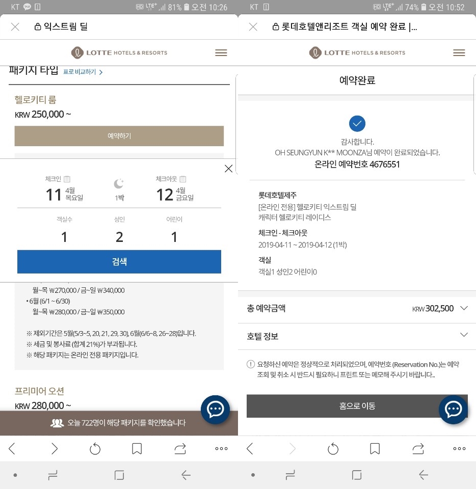 기존 가격보다 저렴하게 예약하고 이용할 수 있는 이벤트를 보자마자 저와 와이프는 핸드폰 2개, 컴퓨터 2대 총 4개의 기기를 이용해 미친듯이 클릭했습니다.