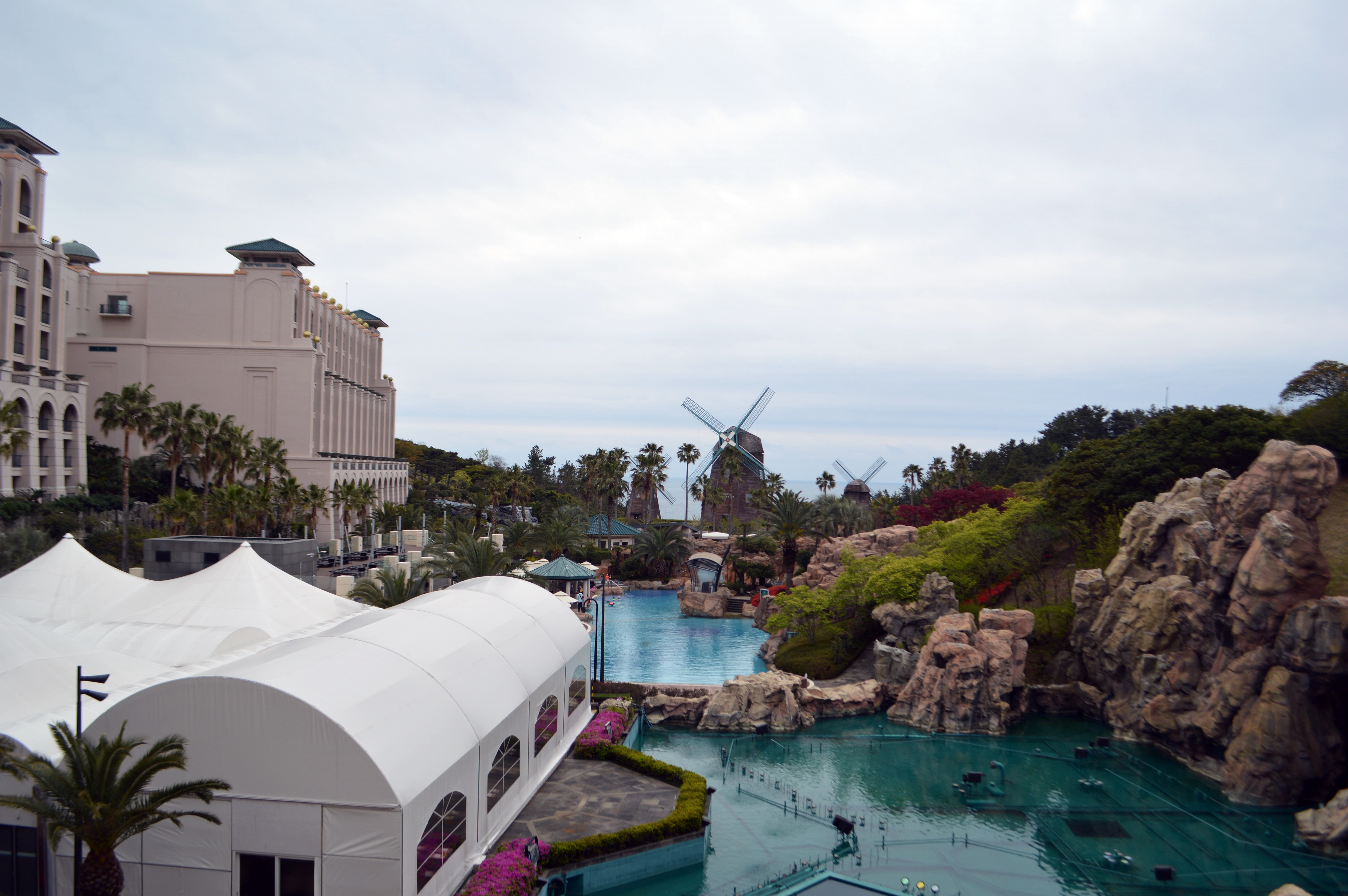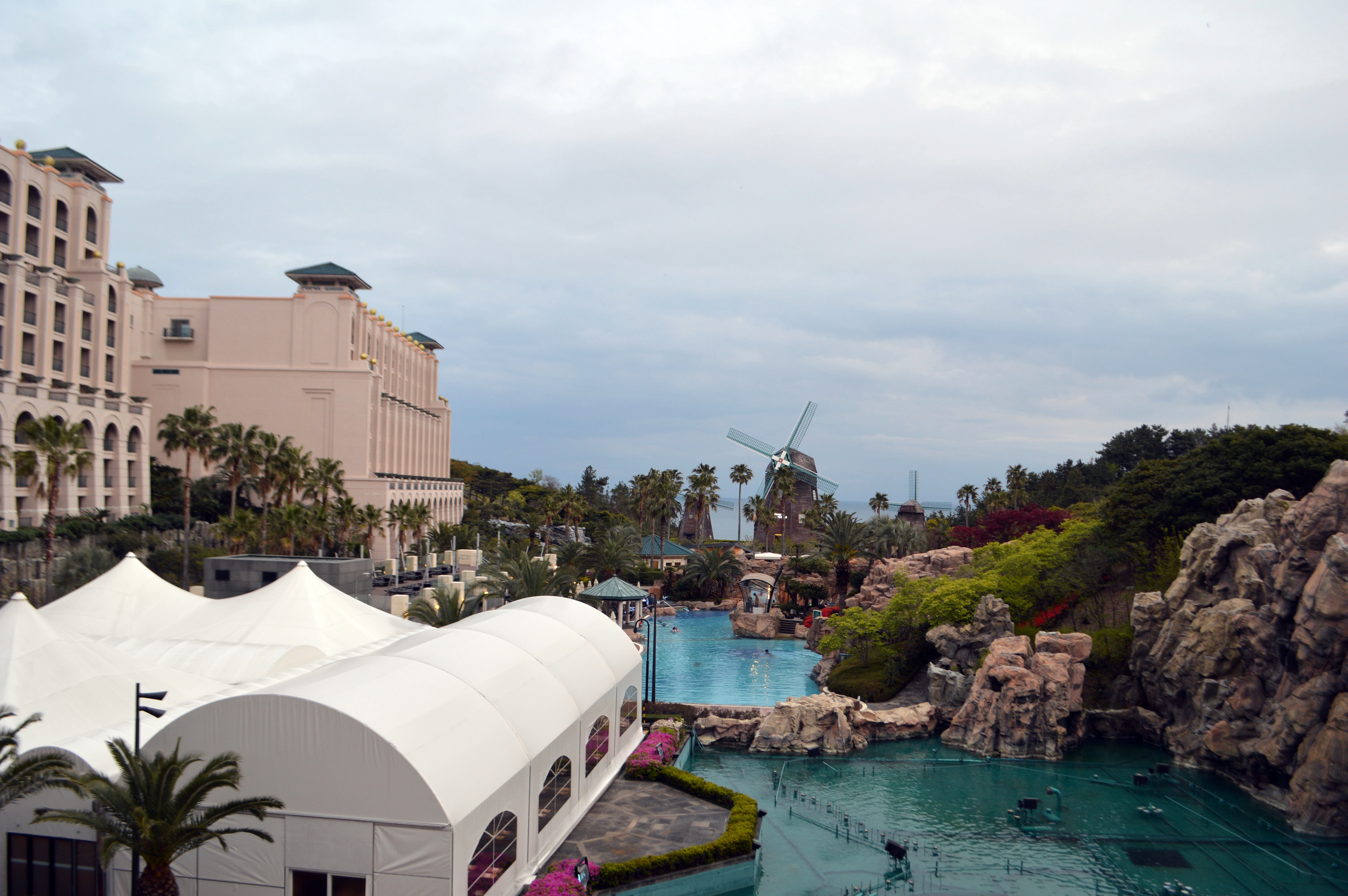 날씨가 흐려 뷰가 이쁘지 않은 건 괜찮습니다. 저는 제주도민이니깐요. 언제든 바다를 가서 이쁜 뷰 보면 되니 문제가 되지 않았는데요. 저녁 먹고 야외 온수풀에서 수영해야 되는데... 추워서 애기들 감기가 걸릴까봐 걱정입니다.