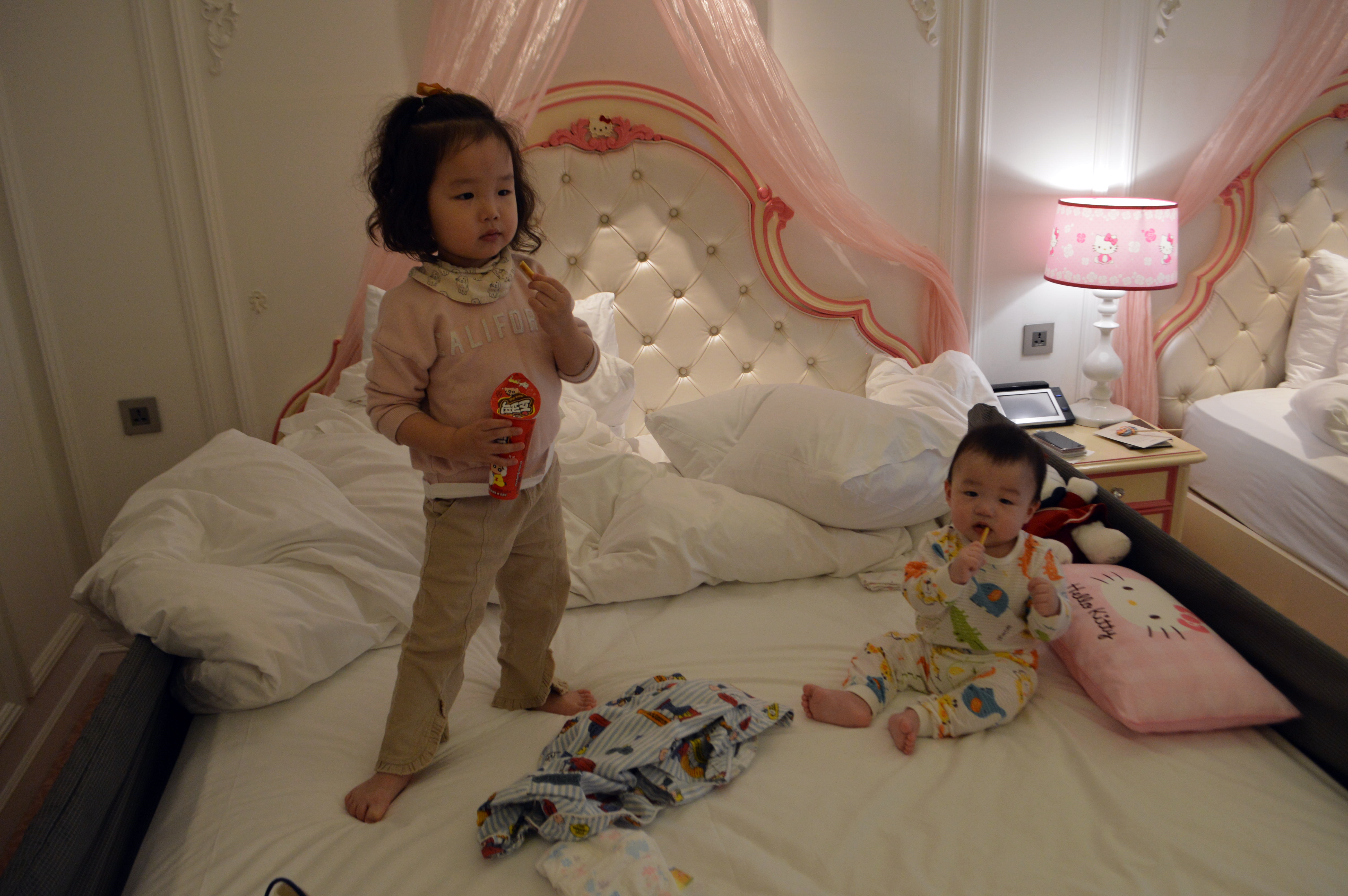 체크인 후 플레이토피아 -> 저녁뷔페 -> 온수풀 물놀이 를 끝으로 첫째와 둘째 모두 '개뻗음' 현상이 벌어졌습니다.